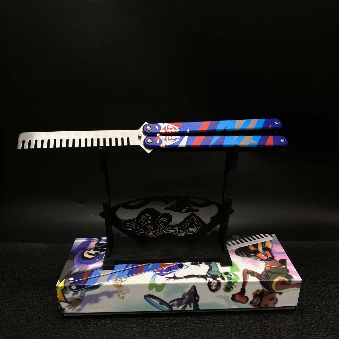 The comb blade is totally blunt and safe for training, and with holes in it to avoid law problems.
