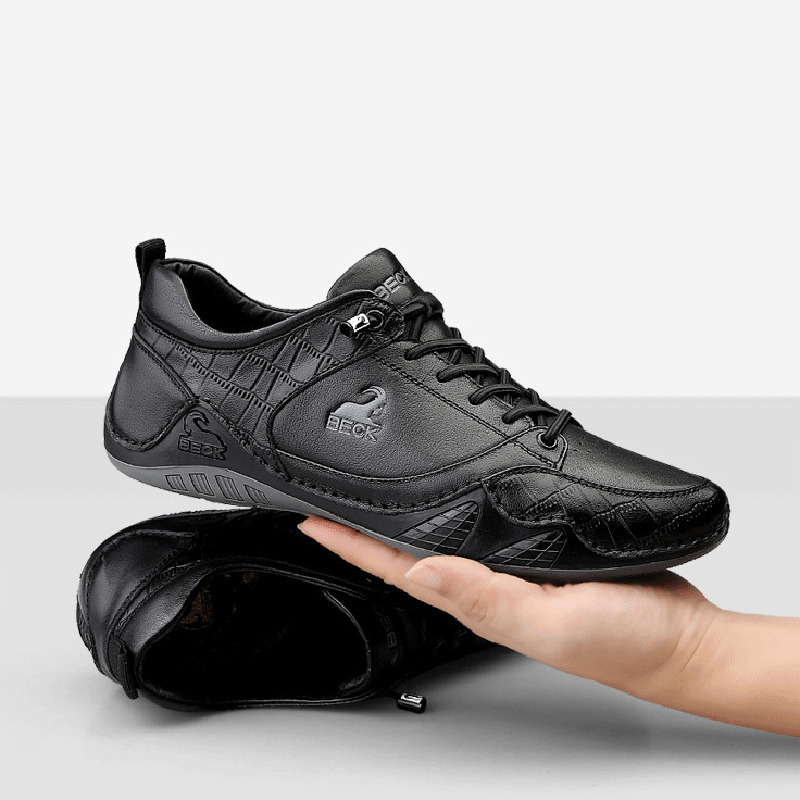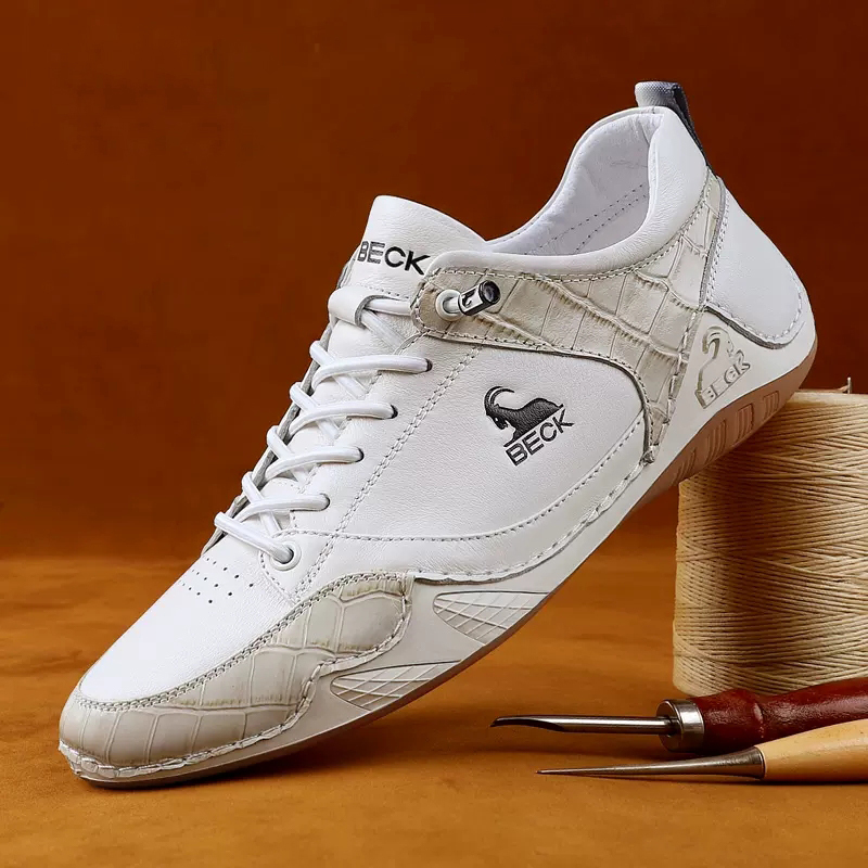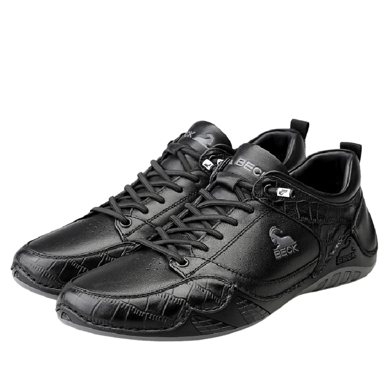 DANRRIO BECK Crocodile Print Patchwork Fashion Casual Leather Shoes