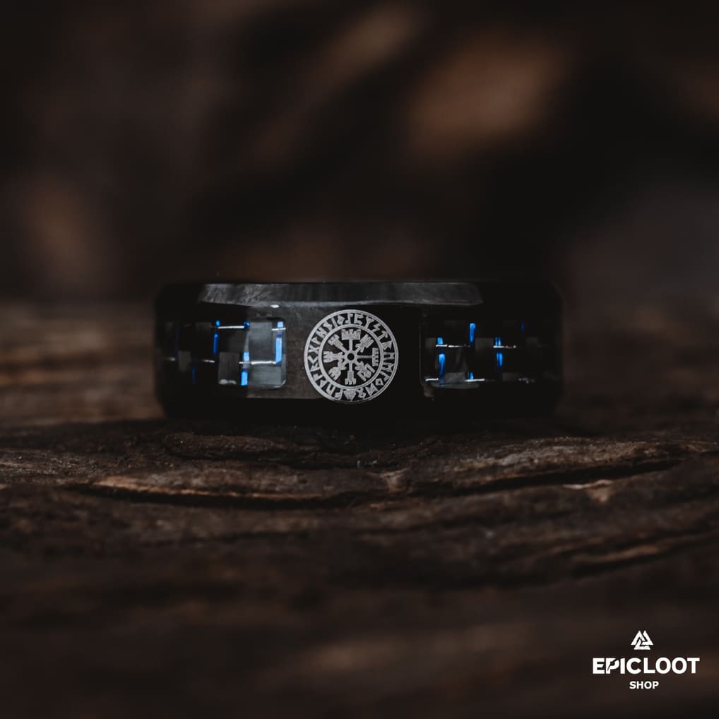 Black Stainless Steel Vegvisir Ring