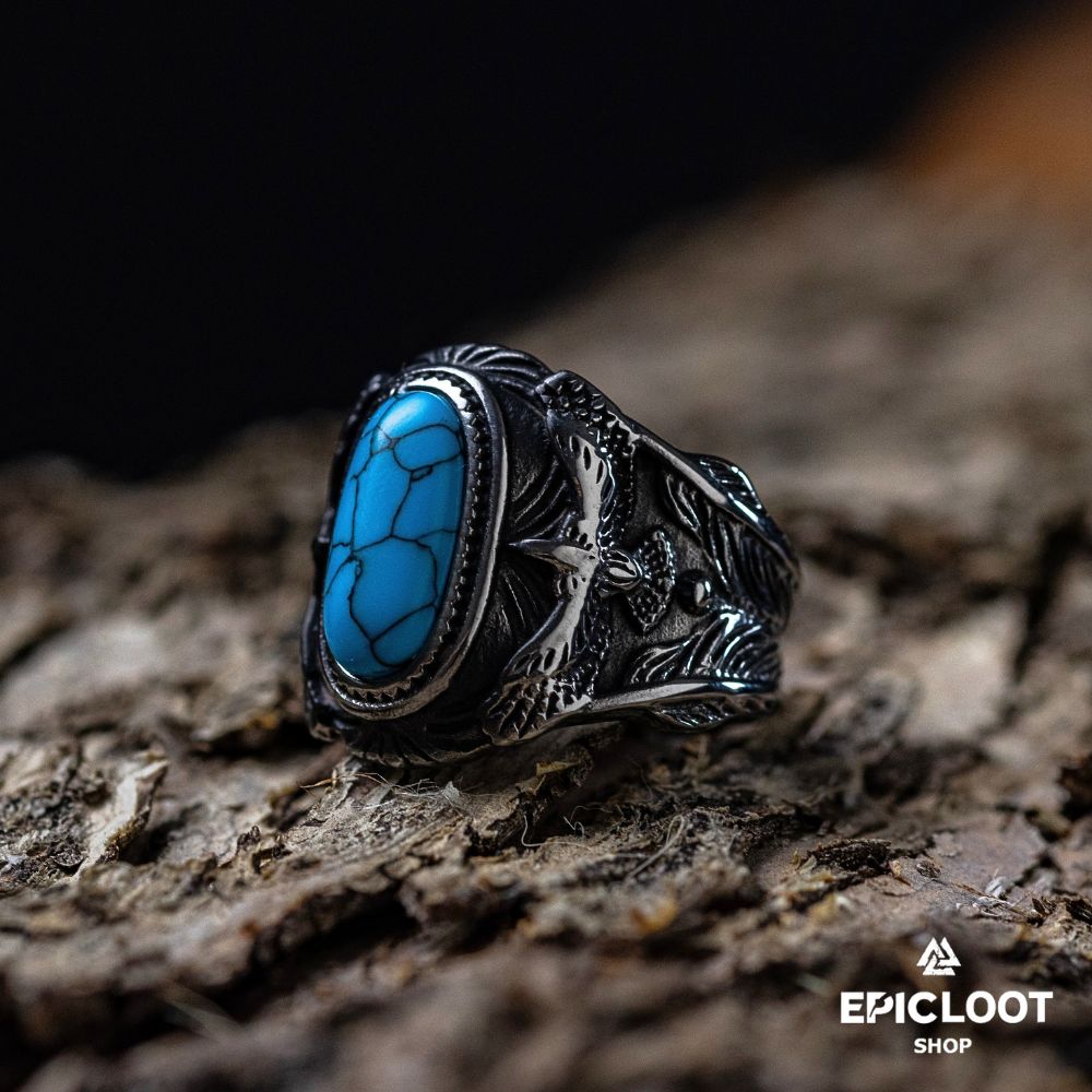 Ravens ring with turquoise Gemstone