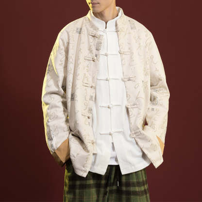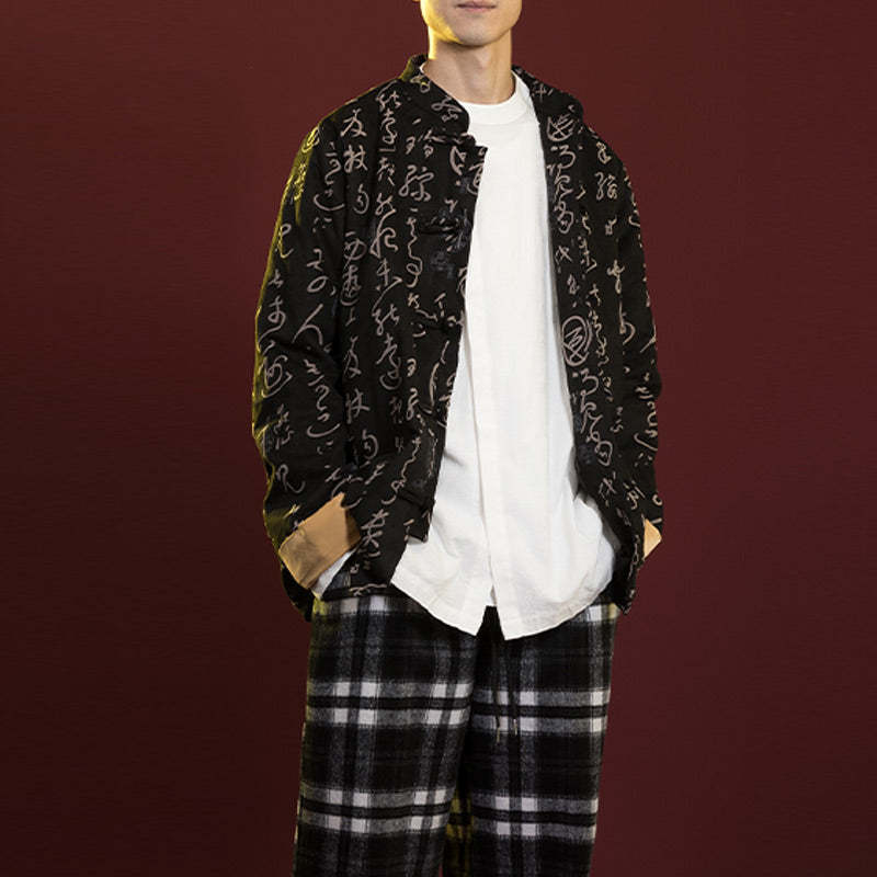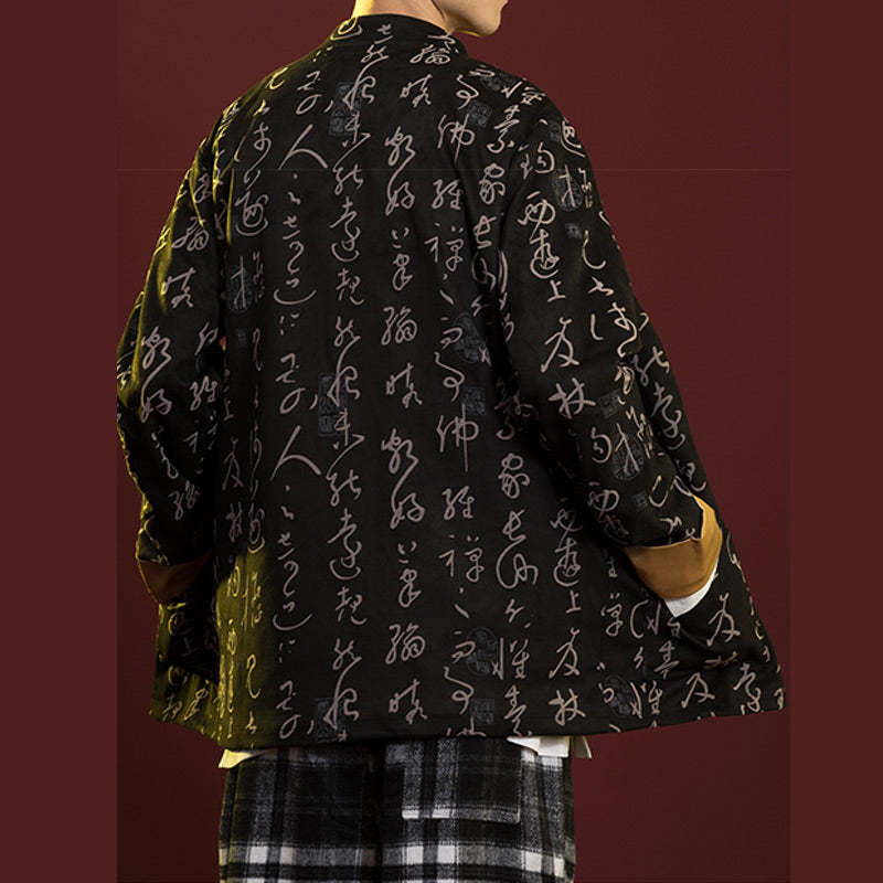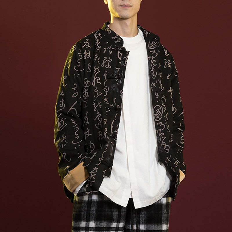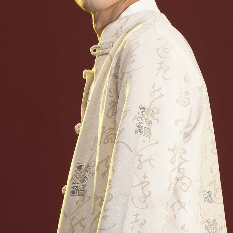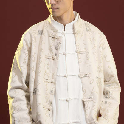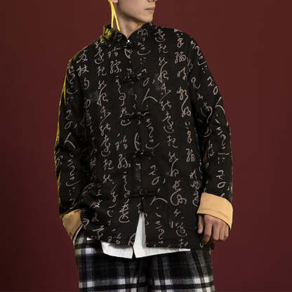 Buddha Stones Chinese Calligraphy Clothing Jacket Coat Tang Suit Men Clothing