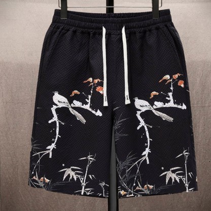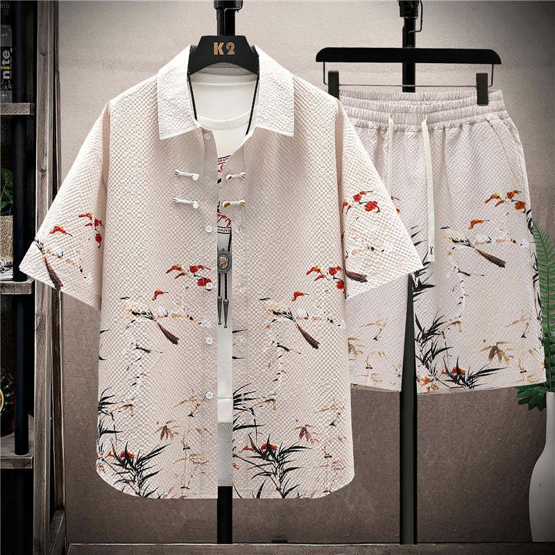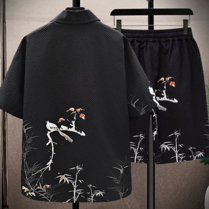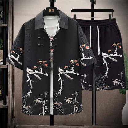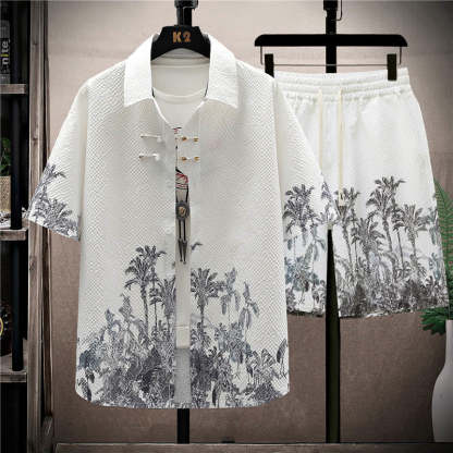 Buddha Stones Landscape Coconut Trees Magpie Pattern Short Sleeve Shorts Men's Set