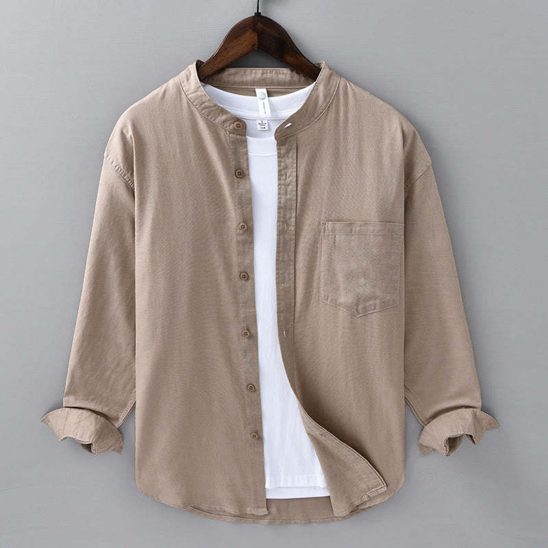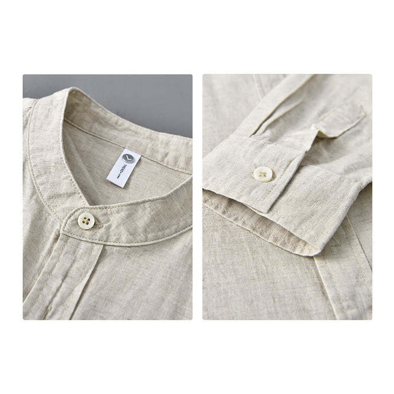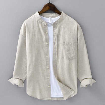 Men's Stand Collar Casual Cotton Shirt combines comfort with a practical design, featuring a single chest pocket and a button-down front. Made from a soft cotton-linen blend, this shirt provides breathability and ease, making it ideal for everyday wear. The stand collar adds a refined touch, ensuring a relaxed yet structured look suitable for various occasions.💕