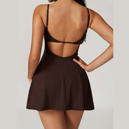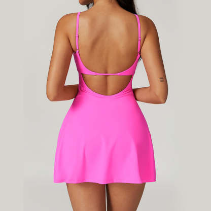Solid Backless Tennis Yoga dress offers a sleek and stylish design, perfect for athletic activities. This women's sports dress is made from breathable, stretchable fabric to ensure comfort and flexibility. The backless design provides a chic look while allowing ease of movement. Ideal for tennis, yoga, and fitness enthusiasts, it combines elegance and practicality.💕