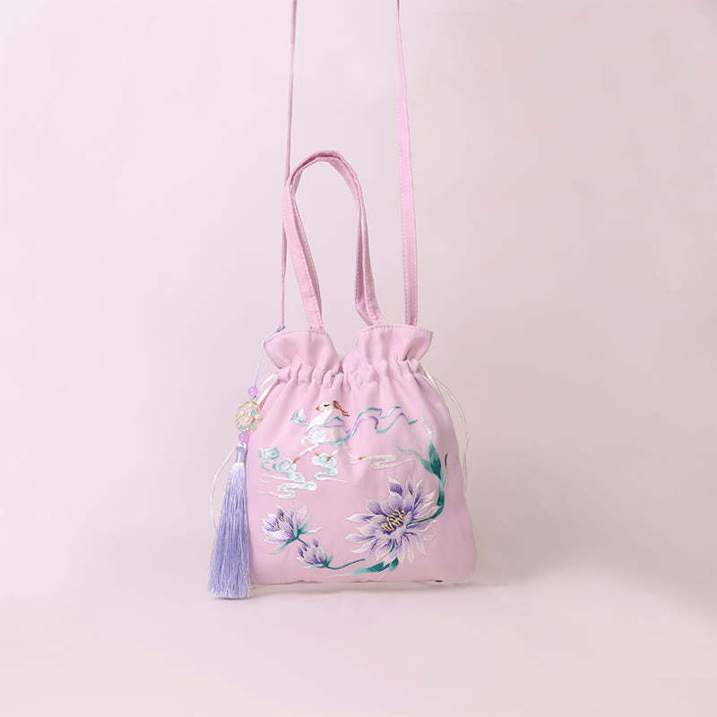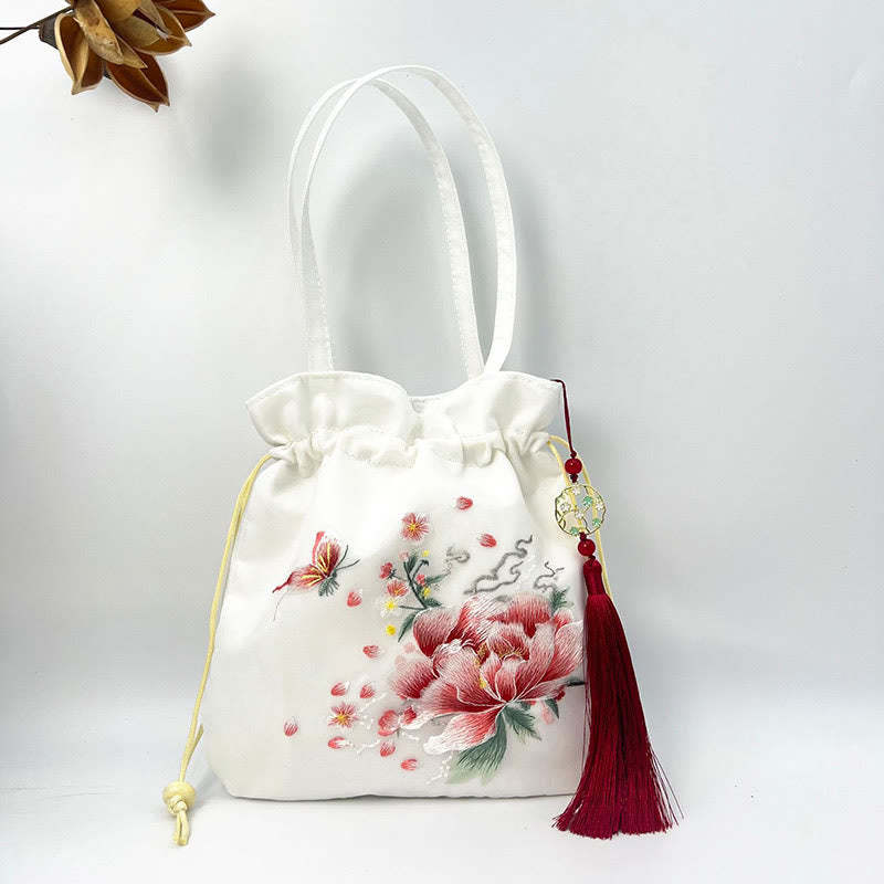 Buddha Stones Suzhou Embroidery Lotus Deer Epiphyllum Peony Rabbit Cotton Linen Tote Crossbody Bag Shoulder Bag Handbag