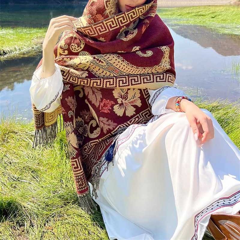 - Multiple Uses: This high-quality designed fashionable Tibetan scarf can be used as a travel blanket, evening shawl, or throw blanket when snuggling on the sofa, it can be worn with coats, sweaters, pullover, shirts, and more.
