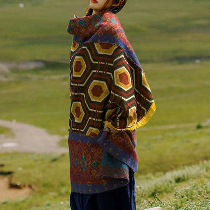 The Buddha Stones Tibetan Shawl, adorned with a Brown, Blue, and Red Geometric Shapes Pattern, is a harmonious blend of art and comfort. Ideal for those who appreciate unique patterns and cultural richness, this winter cozy travel scarf wrap is both a fashion statement and a warm embrace. Its vibrant colors and geometric design evoke a sense of balance and energy, perfect for uplifting spirits during cold winter days. Suitable for various settings, this shawl is a celebration of creativity and warmth.