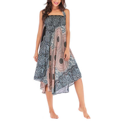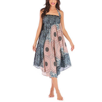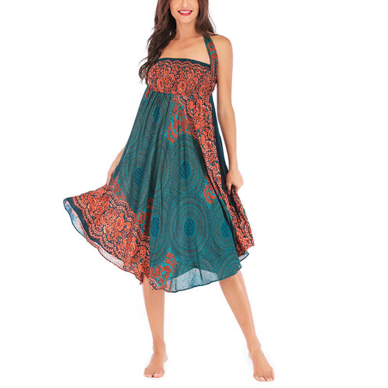 Two Style Wear Bohemian Compass Rose skirt dress features a versatile lace-up design, perfect for varied looks. This piece can be worn as a skirt or a dress, adorned with a beautiful compass rose flower pattern. Crafted from breathable fabric, it ensures comfort and elegance. Ideal for beach outings, this skirt dress embodies bohemian charm and adaptability.💕