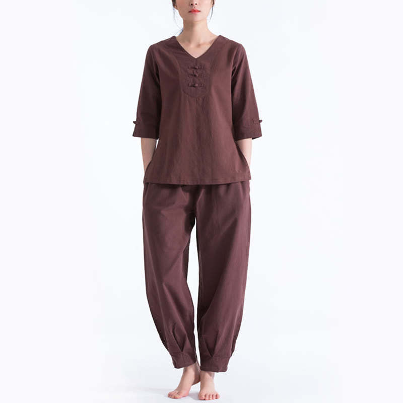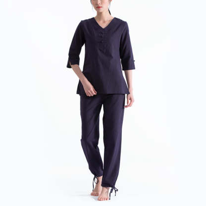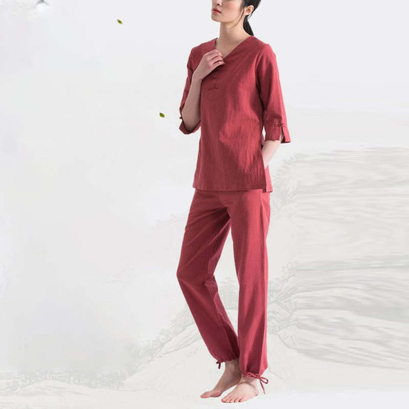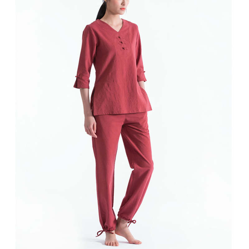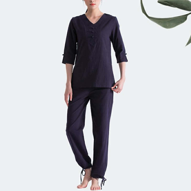- PREMIUM MATERIAL: The Women's Uniform is crafted from high-quality Handmade Cotton and Linen material; skin-friendly. Breathable, relaxed and Comfortable, which will prevent excessive perspiration and keeps the body comfortable. And Cotton and Linen is a better environmentally friendly choice for healthy exercises.