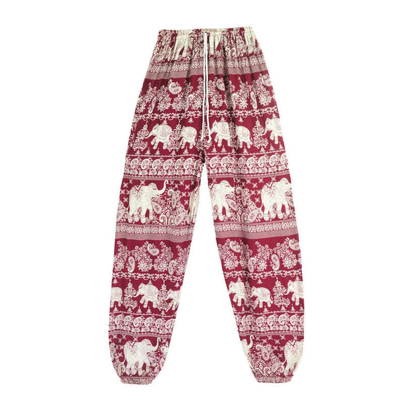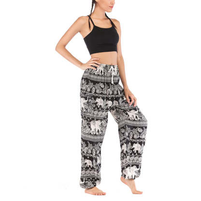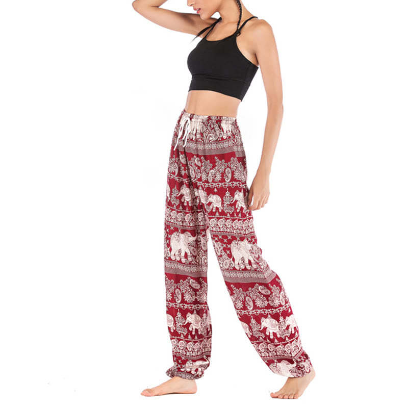 Buddha Stones Boho Loose Elephant Pattern Harem Trousers Women's Yoga Pants
