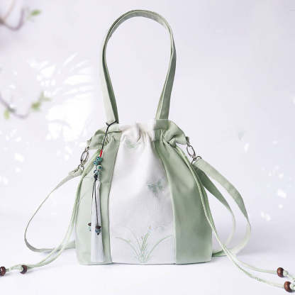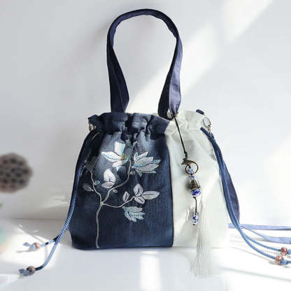 Buddha Stones Embroidered Grass Flowers Cherry Blossom Canvas Tote Crossbody Bag Shoulder Bag Handbag