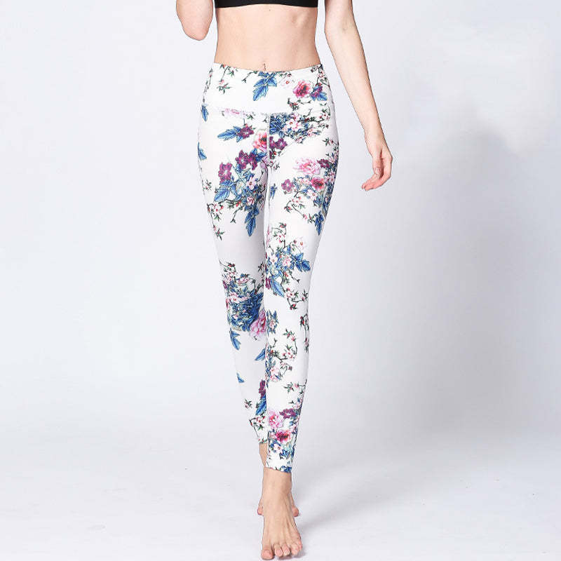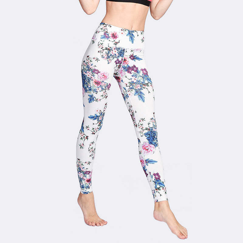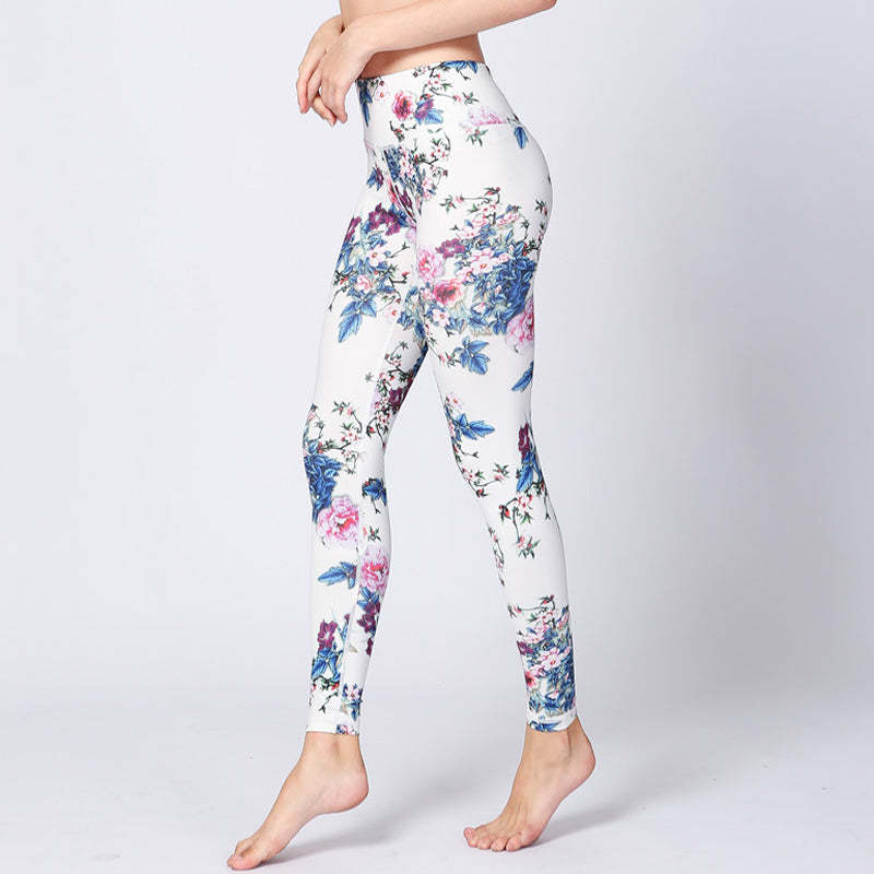 Buddha Stones Pink Flower White Colorful Ink White Print Leggings Sports Fitness Yoga Women's Pants