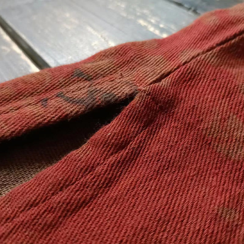 Buddha Stones Orange Peony Flower Cotton Linen Frog-Button Open Front Jacket With Pockets