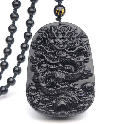 Buddha Stones Black Obsidian Stone Dragon Fulfilment Pendant Necklace