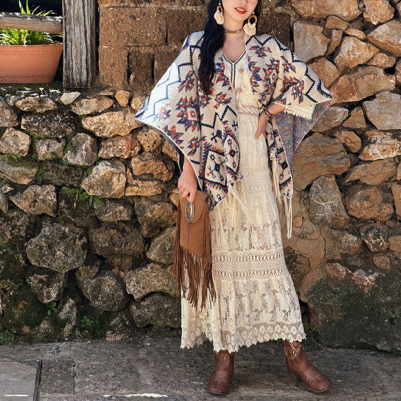 Buddha Stones Tibetan Shawl Striped Geometry Pattern Winter Cozy Travel Knitted Scarf Wrap