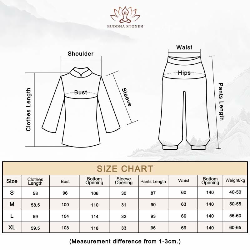 - COMFORTABLE WEARING: Soft and Relax. In spiritual practices such as Yoga, Tai Chi, Qi Gong, Zen Meditation, and Praying, the uniform does fit close to the body and makes the practitioner feel comfortable, meeting the requirements of spiritual practicing.
