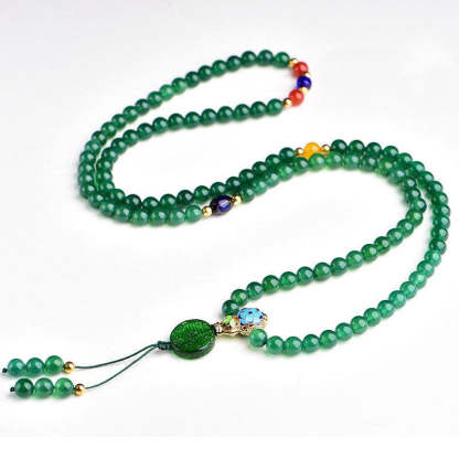 Buddha Stones 108 Mala Beads Natural Green Agate Power Support Bracelet
