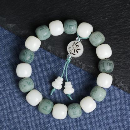 Buddha Stones White Bodhi Six True Words Protection Bracelet