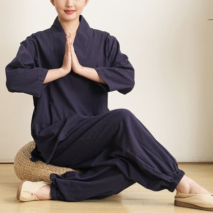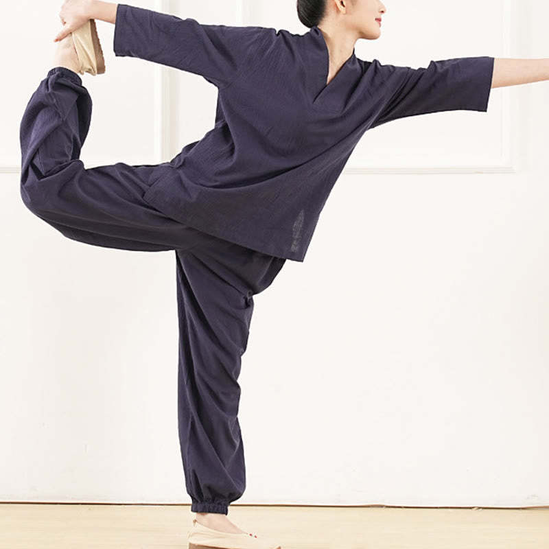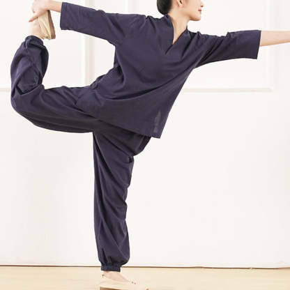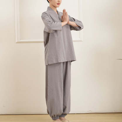 V-Neck Three Quarter Sleeve shirt top and pants set is designed for meditation and Tai Chi practice. Made from breathable cotton linen, this women's set offers comfort and ease of movement. The simple yet elegant design promotes tranquility and focus, making it an ideal choice for enhancing your spiritual practices and maintaining a serene and comfortable experience.💕
