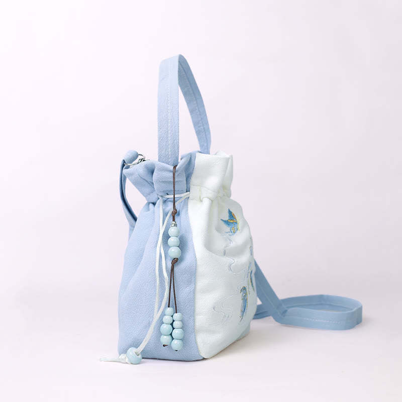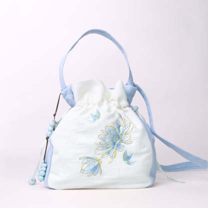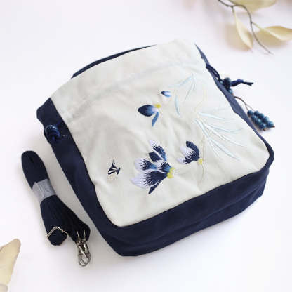 Embroidered Butterfly Lotus bag captures the essence of natural beauty. This cotton-linen tote, featuring delicate butterfly, lotus, and magnolia embroidery, functions as a versatile crossbody, shoulder bag, or handbag. Combining practicality with artistry, it provides ample space and durability, making it perfect for those who value both elegance and functionality in their accessories.💕