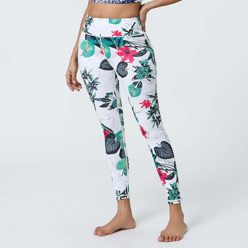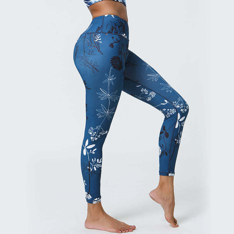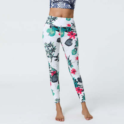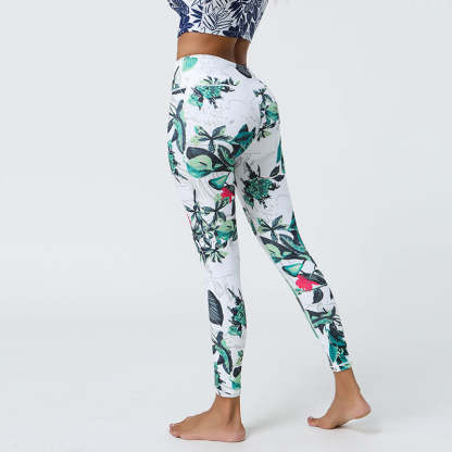 Buddha Stones Flowers Leaves Dandelions Pineapples Print Sports Fitness High Waist Leggings Women's Yoga Pants