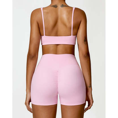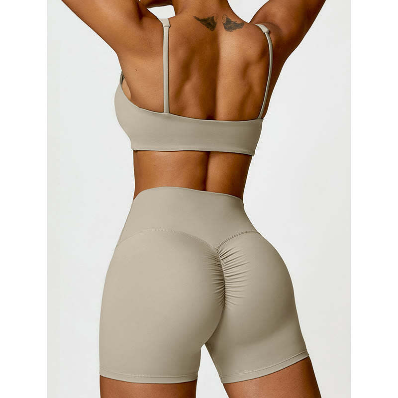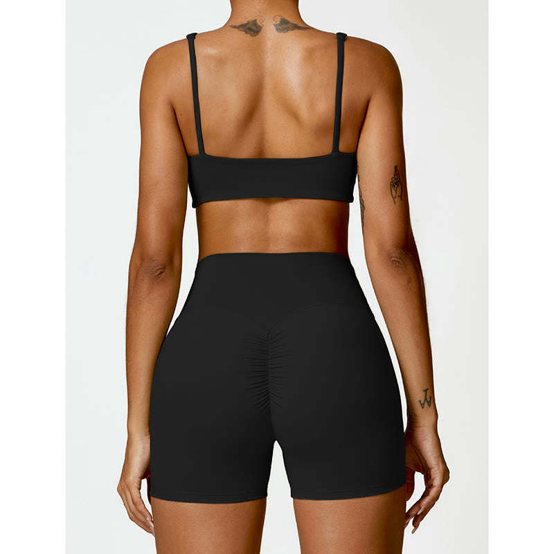 Buddha Stones Gym Sports Yoga Backless Bra Crop Tank Top Shorts