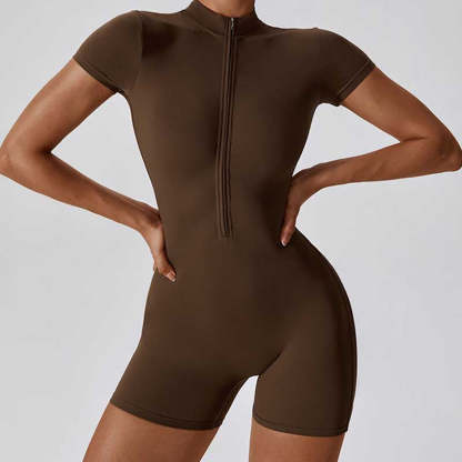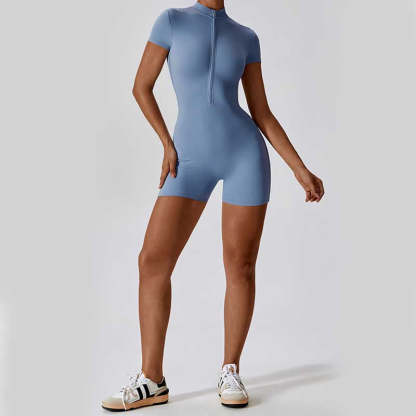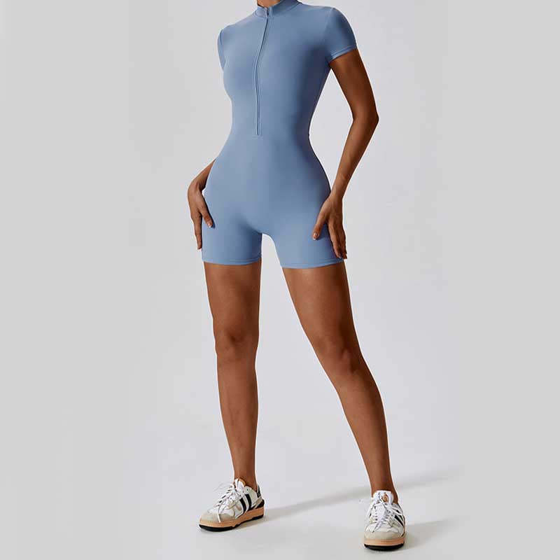 Buddha Stones High Stretch Zipper Short Sleeve Jumpsuit Sports Fitness Yoga Women Bodysuit