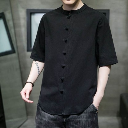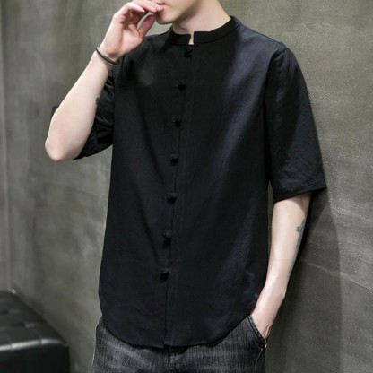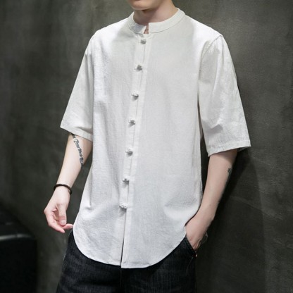 Buddha Stones Plain Color Men's Half Sleeve Cotton Shirt