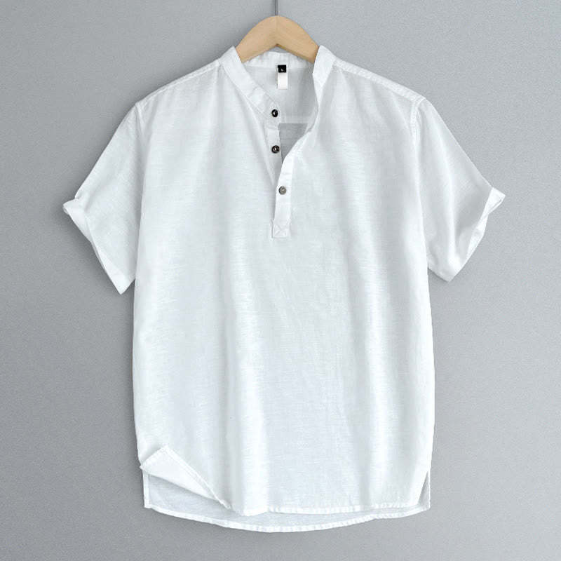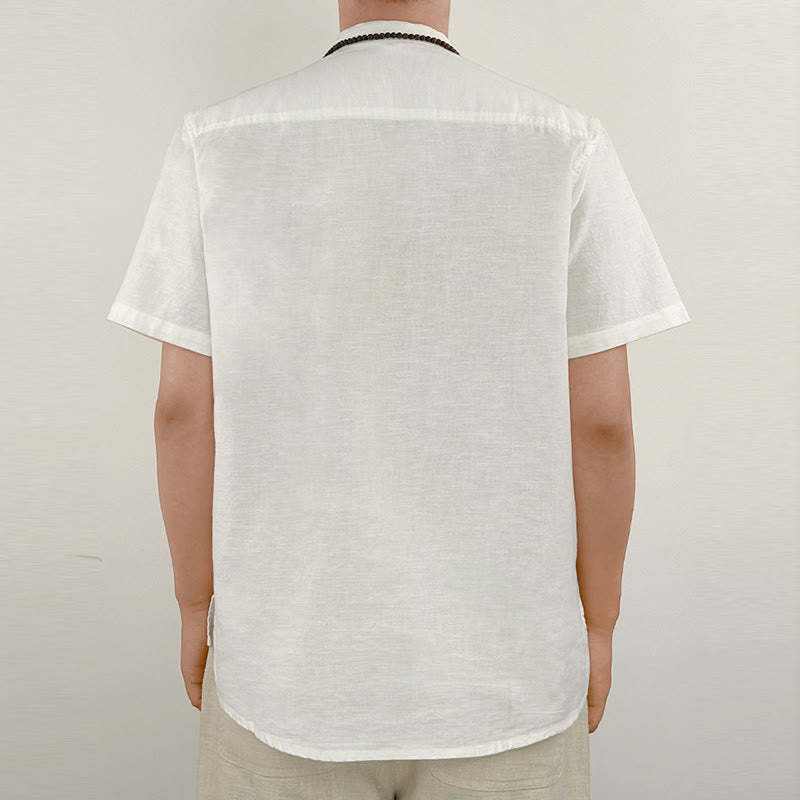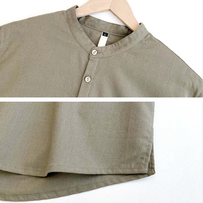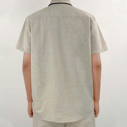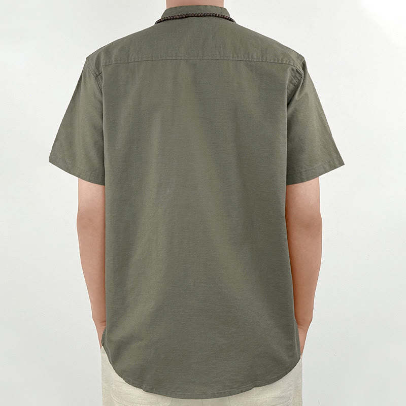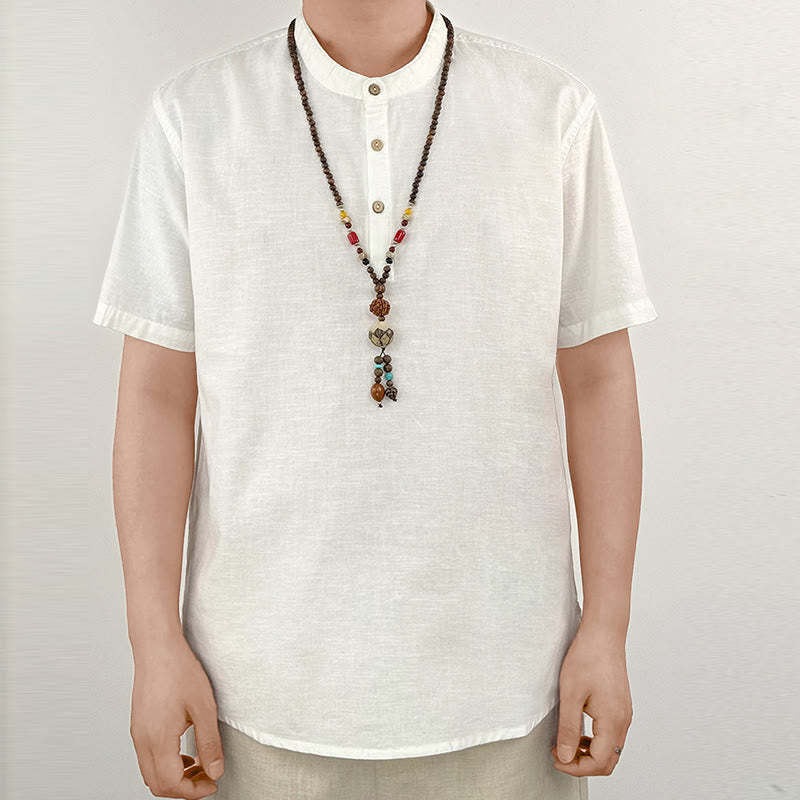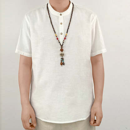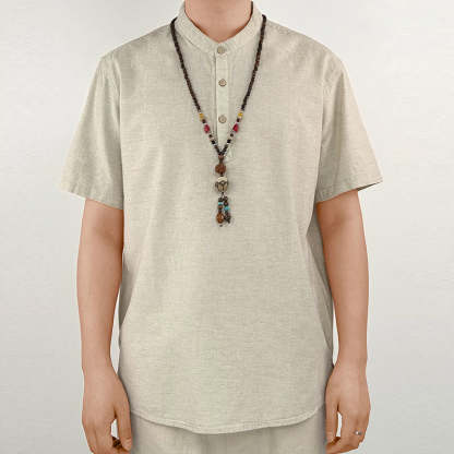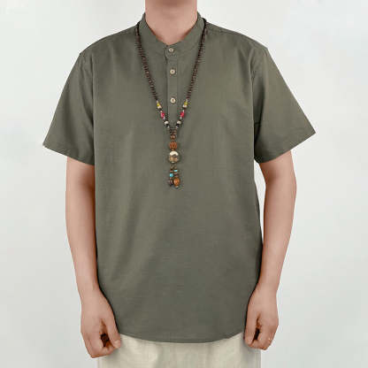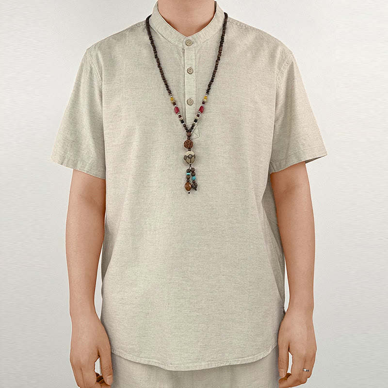 Buddha Stones Solid Color Men Short Sleeve Button Linen Shirt