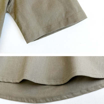 Solid Color Button Linen shirt combines minimalism with comfort. This short sleeve shirt features a classic button closure, crafted from breathable linen for a relaxed fit. Its solid color design ensures versatility, making it easy to pair with various outfits. Perfect for warm weather, it offers practicality and a refined look, ideal for those seeking simplicity and style in their wardrobe.💕