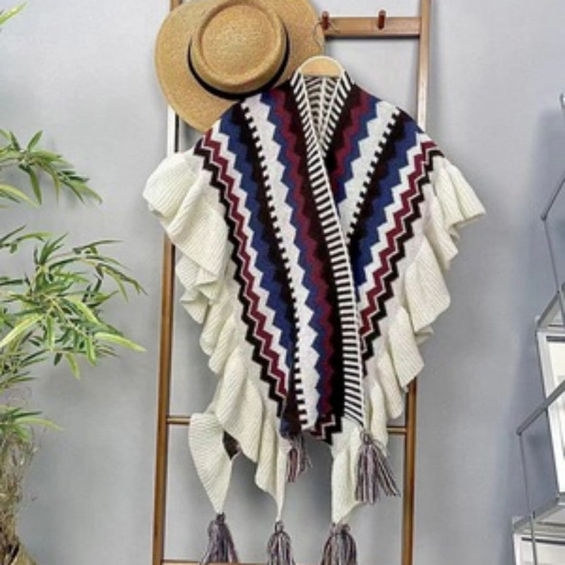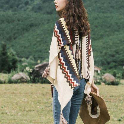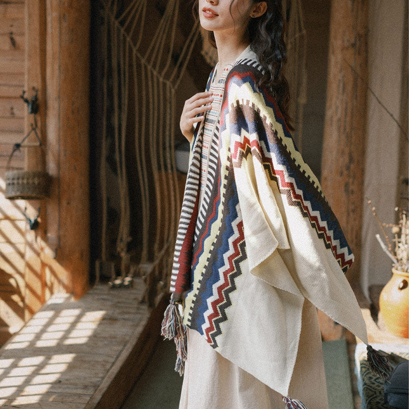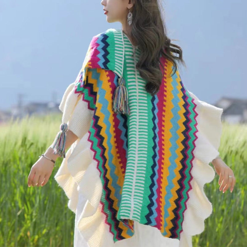 Buddha Stones Warm Striped shawl, featuring an array of colorful stripes that bring a cozy addition to any travel gear or daily outfit. Crafted from warm, soft fabric and adorned with tassel details, this shawl offers a blend of comfort and style, making it an essential accessory for those seeking to combine traditional Tibetan charm with a touch of modern fashion.