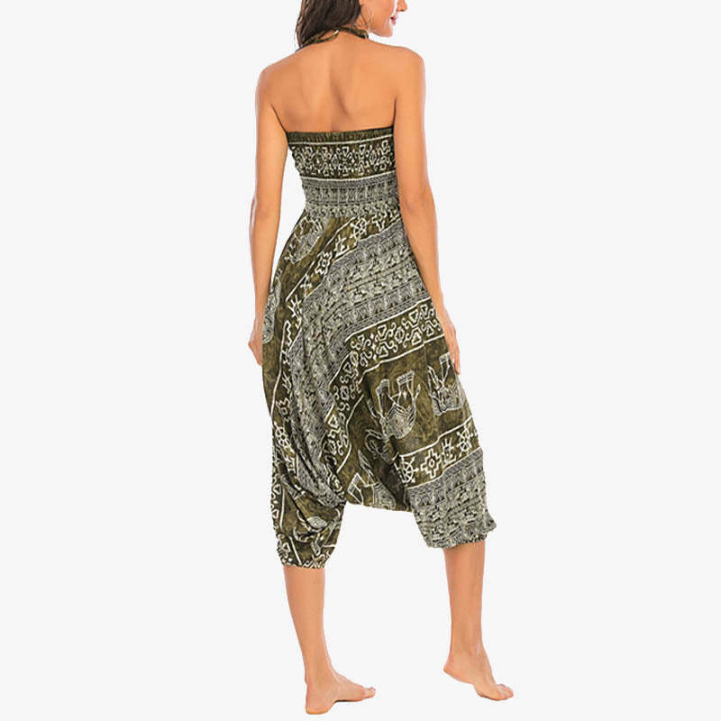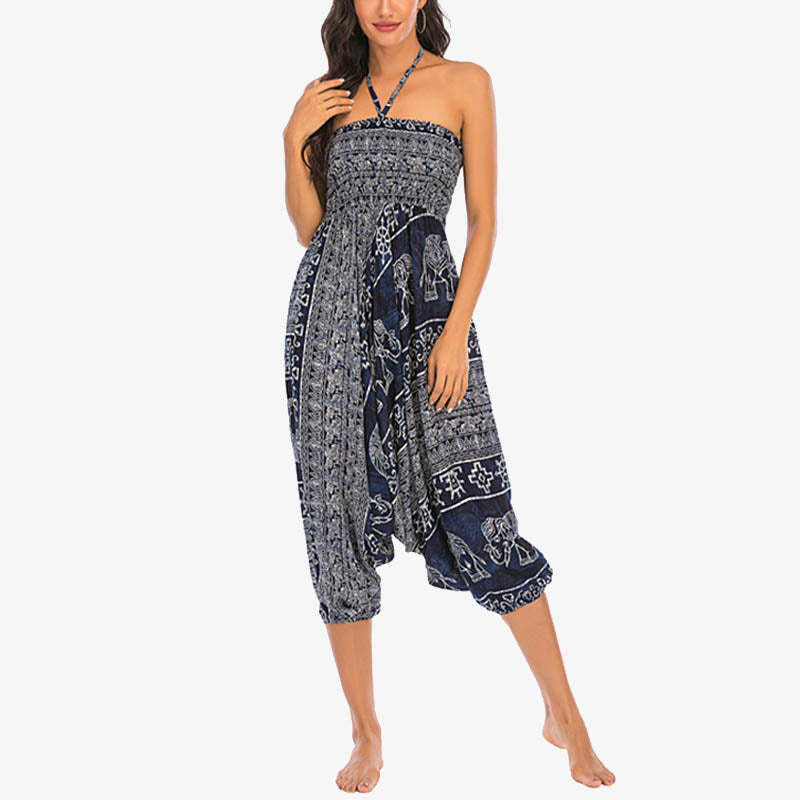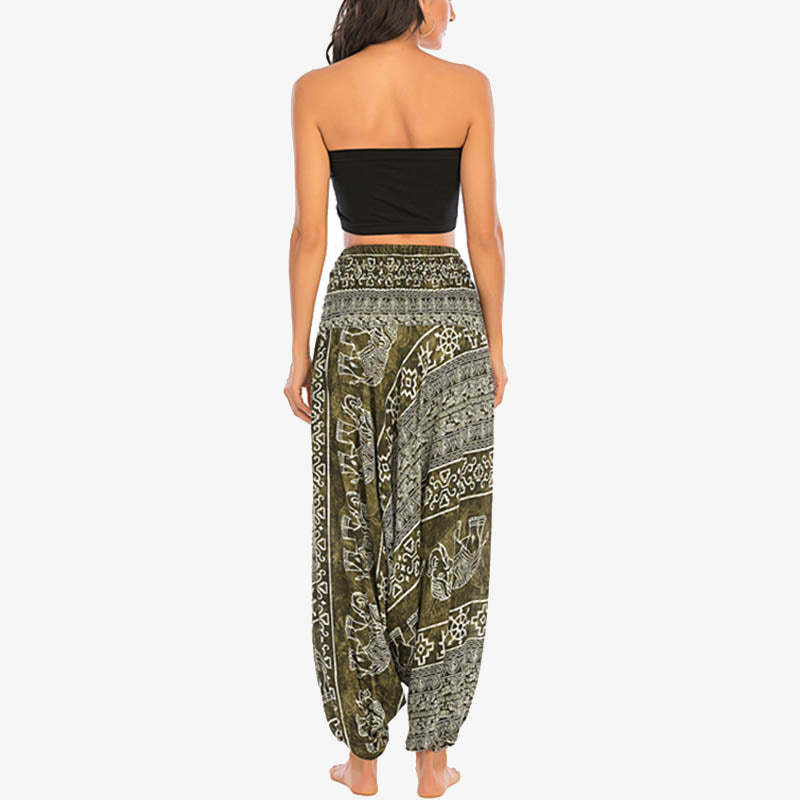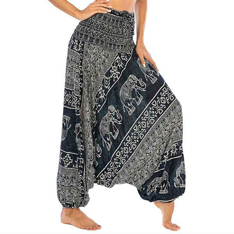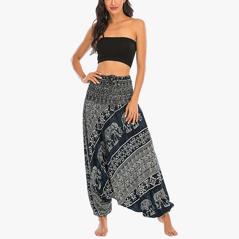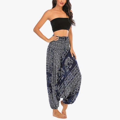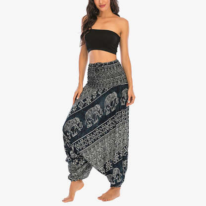 Buddha Stones Two Style Wear Elephant Pattern Loose Smocked Harem Trousers Jumpsuit Women's Yoga Pants