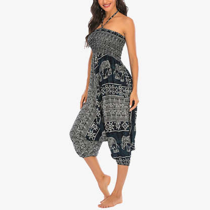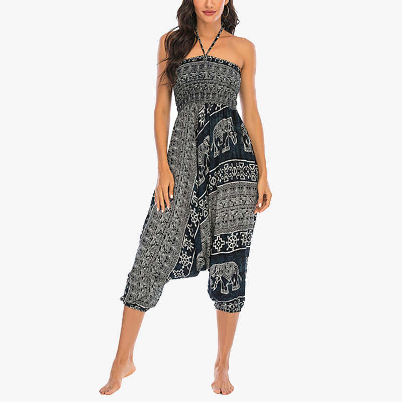 Elephant Pattern Yoga pants offer a unique two-style wear design, effortlessly transforming from loose smocked harem trousers to a chic jumpsuit. Adorned with an enchanting elephant pattern, these pants are crafted for women who appreciate versatility in their yoga attire. Perfect for embracing comfort while expressing a playful sense of style during yoga sessions or casual outings.💕