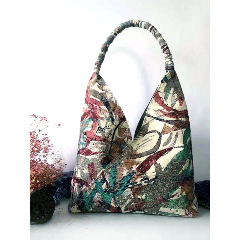 Buddha Stones Handmade Embroidery Pattern Canvas Shoulder Bag Tote Bag Set